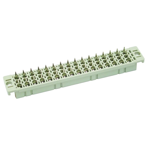 Federleiste, Einpressanschluss, Bemessungsstrom: 6 A, Kontakte: 48, gerade, Kupferlegierung, Edelmetall über Ni steckseitig, Ni anschlussseitig, Anforderungsstufe: 1, nach IEC 60603-2, Kodierung: Loch-Kodierung, Kodierung mit Kontaktverlust, Kragen-Kodierung, Leiterplattenbefestigung: mit Flansch, Thermoplastischer Formstoff, glasfaserverstärkt, RAL 7032 (kieselgrau)