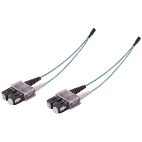 Multimode-LWL-Kabel, beidseitig konfektioniert, SC duplex auf SC duplex, Kabeldurchmesser: 5,17 mm, Kabellänge: 1 m.