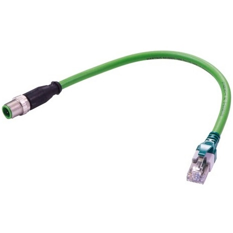 Sensor-Aktor Kabel, M12-Kabelstecker, gerade auf RJ45-Kabelstecker, gerade, 4-polig, 0.2 m, PUR, grün, 09486896018002