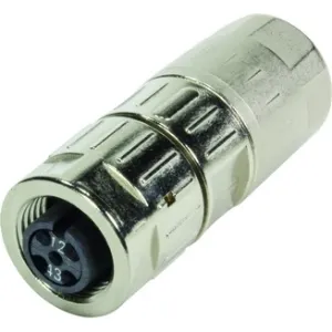 Kabelsteckverbinder, gerade, Buchse, D-Kodierung, HARAX Anschlusstechnik, Polyamid (PA), Kontakte: 4, Kupferlegierung Au über Ni steckseitig, Leiterquerschnitt: 0,14 mm², Bemessungsstrom: 4 A, Zink-Druckguss, Schraubverriegelung, Schutzart: IP65 / IP67 im g.esteckten Zustand
