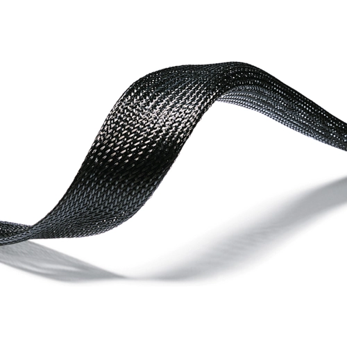 Nach dem Scherenprinzip gewebt, dadurch weitet sich der Schlauch beim Zusammenstauchen und beim Auseinanderziehen reduziert sich der Durchmesser; Material: Polyester (PET), halogenfrei, Farbe: schwarz, Brandverhalten: entspricht UL 94 V-2, Schmelzpunkt: +250 °C, Deckungsgrad: ca. 81 %, Betriebstemperatur: –50 bis +150 °C, kurzfristig bis +220 °C.