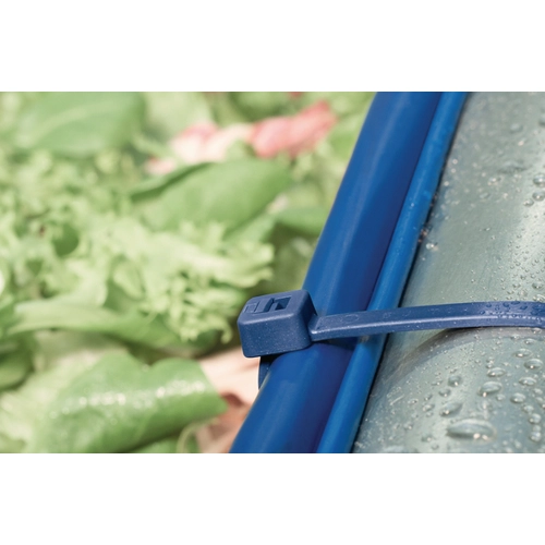 Dieser Kabelbinder ist speziell für den Einsatz in der Lebensmittel- und Pharmaindustrie konzipiert. Ein einzigartiges Herstellungsverfahren, bei dem ein Metallpigment eingearbeitet wird, ermöglicht es, dass selbst kleine "abgeschnittene" Abschnitte des Binders von Standard-Metalldetektoren erkannt werden können. Ideal geeignet für die Installation von Kabeln in und um den Herstellungsprozes.