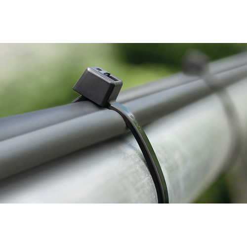 Diese innenverzahnten Kabelbinder sind aus UV beständigem Polyamid 6.6 (PA66W/UV) gefertigt und für Außenanwendungen geeignet. Im Vergleich zu konventionellen Kabelbindern aus PA66, widerstehen UV stabilisierte Kabelbinder der UV-Strahlung für einen wesentlich längeren Zeitraum. Zum Bündeln und Befestigen von Kabeln, Rohren und Schläuchen im Außenbereich werden daher PA66W Kabelbinder empfohlen.
