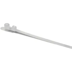 Kabelbinder mit integriertem Befestigungsloch. Nach der Befestigung um die Kabel kann das Bündel einfach mit einer Schraube oder einem Bolzen an der Platte besfestigt werden.
