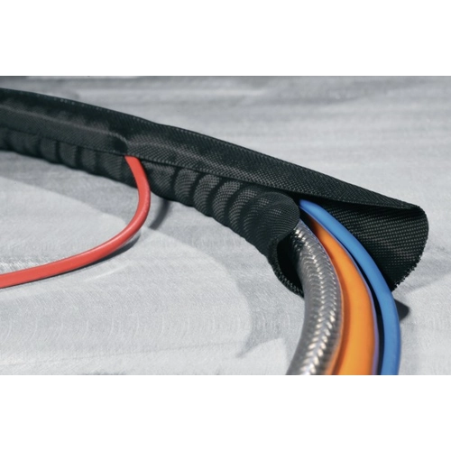 Einfaches, schnelles Anbringen und Entfernen des Schutzschlauches auch an bereits installierten Kabeln; Material: Polyester (PET), Farbe: schwarz, Betriebstemperatur: –70 bis +125 °C, Schmelzpunkt: +255 °C, Brandschutzverhalten: entspricht FMVSS 302, selbstverlöschend.