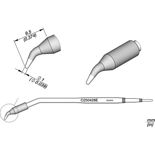 Lötspitze, konisch, Ø 1 mm, (B) 9.5 mm, C250428E