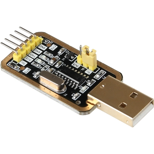 Diese USB-TTL-Schnittstelle basiert auf dem weit verbreiteten CH340G-Chip und ist in der Regel ohne Installation zusätzlicher Treiber einsatzbereit. Darüber hinaus ermöglicht die Konfiguration über Jumper das Umschalten zwischen 3,3 V und 5 V (sowohl für die Versorgungsspannung als auch für den Logikpegel).