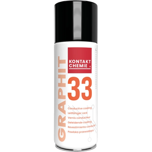 GRAPHIT 33 bildet eine schwarze, leitfähige Graphitbeschichtung. Der Leitlack reduziert Oberflächenwiderstände dauerhaft auf Werte kleiner 2000 Ohm und hat eine gute Haftung auch auf Kunststoffen und Gummi. GRAPHIT 33 wird zur antistatischen Beschichtung von Kunststoffrohren, als leitfähige Trennschutzschicht für Hochspannungskontakte und zur Reparatur graphitierter Leiterschichten eingesetzt.