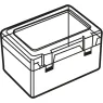 Unterteil: blau, Deckel: glasklar. Ausführung: BS/bündiger glatter Deckel, BSS/bündiger Deckel mit umlaufender Nut zum Stapeln. Das Maß U besagt die Höhe des Unterteils, da diese Ausführung einen höheren Haubendeckel hat. Die Ausführung V 8 - 06 hat ein schwarzes Unterteil.