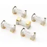 Metall-Sicherungsclips mit vorinstallierter Littelfuse 443-Sicherung. Diese Kombination aus Sicherung und Clip kann in einem einzigen effizienten Fertigungsschritt automatisch in Leiterplatten eingebaut werden. Sie ermöglicht ein schnelles und einfaches Auswechseln der Sicherungen, ohne die Leiterplatten und andere Komponenten dem Risiko von Nachlötarbeiten auszusetzen, wie es bei direkt oberflächenmontierten Sicherungen erforderlich ist. Es wurde entwickelt, um die Einhaltung der RoHS-Richtlinie zu ermöglichen. Dieses Produkt ist vollständig kompatibel mit bleifreier Lötlegierung und höheren Temperaturprofilen, die mit bleifreier Montage verbunden sind.