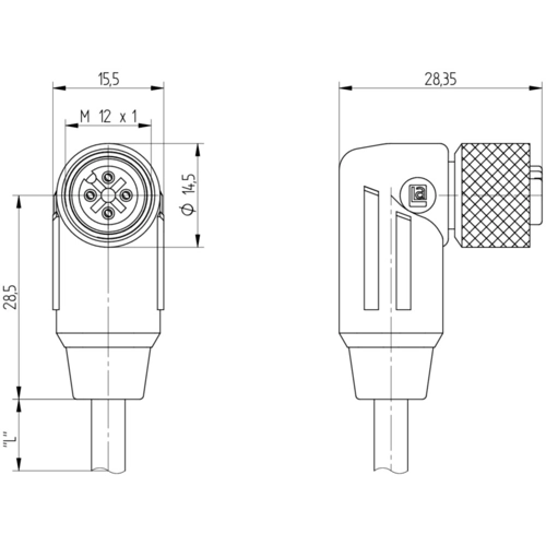 | Anschluss (2) | M12-Kabeldose, abgewinkelt | |