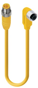 Sensor-Aktor Kabel, M12-Kabelstecker, gerade auf M12-Kabeldose, abgewinkelt, 4-polig, 4 m, PUR, gelb, 4 A, 26635