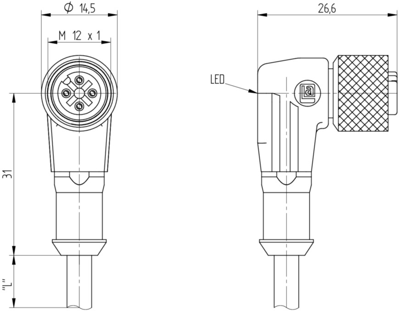 | Anschluss (2) | M12-Kabeldose, abgewinkelt | |