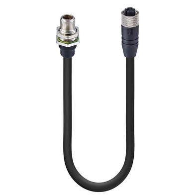 Schnelles Ethernet Cat5e Daten Doppelendiger Kabelsatz: Stecker gerade, Y-kodiert, schwarz, M12-Hybrid, auf Buchse gerade, Y-kodiert, schwarz, M12-Hybrid, geschirmt, 50 V AC/ DC, Leistung: 6 A; Daten: 0,5 A; PUR-Kabel schwarz, 8-Leitungen, Daten: 4x0,15 mm² + Leistung: 4x0,75 mm².