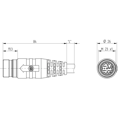 M23 Leistung Doppelendiger Kabelsatz: Stecker gerade auf Buchse gerade, 19-polig, Schwarzer Körper, 120 V AC/DC, 16x8 A + 3x10 A; PUR-Kabel schwarz, 16x0,5 mm² + 3x1,0 mm².