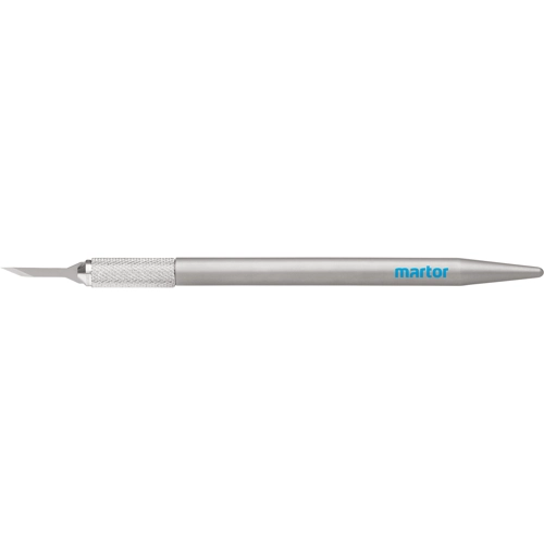 Griff aus Aluminium, in Bleistiftform, mit schmaler, schräger und austauschbarer Klinge.