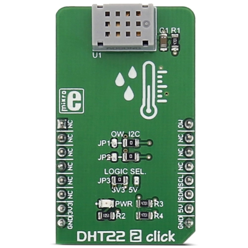 Type Temperature / Humidity, On-board modules CM2322 sensor with very accurate thermal and humidity measuring capabilities, Key Features Great measuring accuracy: ±0.3°C, ±2%RH at 25°C, ultra-small size, low power consumption, signal transmission distance up to 20 meters., Interface 1-wire,I2C, Input Voltage 3.3V or 5V, Click board size M (42.9 x 25.4 mm)