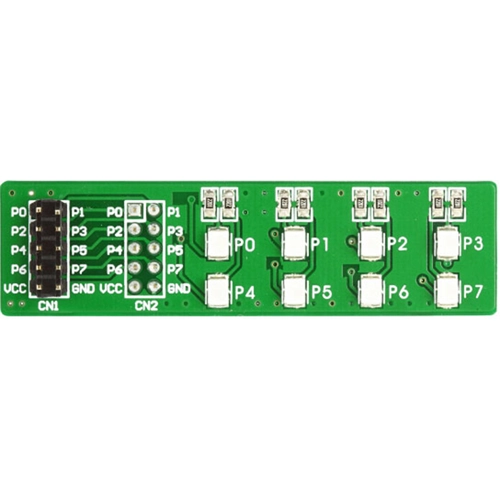 Enthält 8 LEDs mit niedrigem Stromverbrauch und zwei IDC-10-Kontaktleisten, Kontaktleiste CN1 verfügt über Stifte, Kontaktleiste CN2 über Stiftführungen, das kleine und gut markierte EasyLED eignet sich zum Hinzufügen von LED-Signalen zu einem Prototyp.