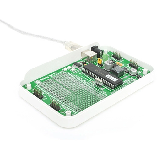 MCU: PIC18F45K22,MCU speed: 16MIPS, 48MHz,MCU Memory: 32KB of Flash, 1,536 bytes of RAM,Power Supply: 5V (via USB), 7-23V AC or 9-32V DC (via external adapter),On-board modules: USB-UART, Breadboard area,Applications: Best solution for fast and simple development of microcontroller applications ,Key Benefits: Can be fitted in a professional-looking casing, which turns the your device into a ready-to-sell product,Programming: Preprogrammed with UART bootloader. Also features mikroProg for PIC, dsPIC and PIC32 connector,Expandability: 4 x IDC10 male headers,Architecture: PIC (8-bit)