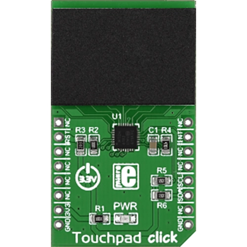 Interface: I2C,Power Supply: 3.3V,On-board modules: Microchip’s low-powered MTCH6102 controller,Applications: Ideal for interfaces on size-constrained designs, such as wearables, touchpads on remote controls and similar,Key Features: Supports taps, doubletaps, swipes and scrolling gestures. Several power saving modes,Key Benefits: Cover layer support. Low power consumption,Compatibility: mikroBUS,Product Type: Capacitive,Click board size: M (42.9 x 25.4 mm)