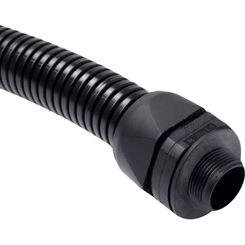 Die VG Schlauchverschraubung wird aus speziell modifiziertem Polyamid 6 und thermoplastischem Elastomer gefertigt. Das Material ist halogen-, phosphor- und cadmiumfrei.