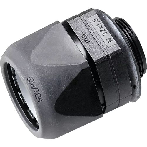 Die VG Schlauchverschraubung wird aus speziell modifiziertem Polyamid 6 und thermoplastischem Elastomer gefertigt. Das Material ist halogen-, phosphor- und cadmiumfrei.