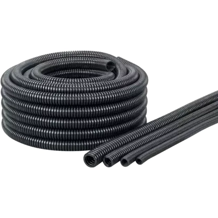Der Kabelschutzschlauch wird aus speziell modifiziertem Polyamid 6 gefertigt. Das Material ist halogen-, phosphor- und cadmiumfrei. Der kostengünstige Kabelschutzschlauch zeichnet sich durch eine hervorragende Selbstverlöschung und eine hohe Tritt- und Schlagfestigkeit aus.