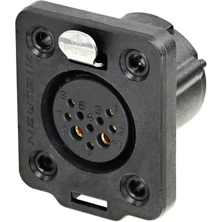 XLR-Einbaubuchse, 10-polig, vergoldet, 2,5 mm², AWG 24, Polyamid, NC10FDX-TOP
