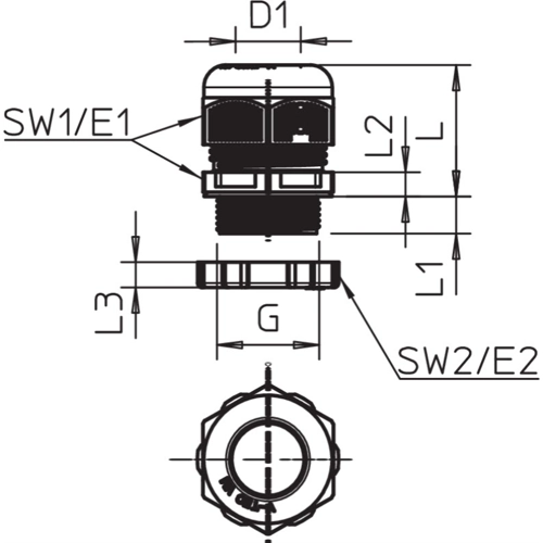 Kabelverschraubung mit PG-Anschlussgewinde in Hutmutterbauart, für Kabelabzweigkästen, Gehäuse, Verteilerkästen im privaten und industriellen Bereich. Mit Zugentlastung und integrierter Dichtlippe, geprüft nach DIN EN 62444. Schutzklasse IP68. Einsetzbar von -20°C bis +65°C. Inklusive Gegenmutter