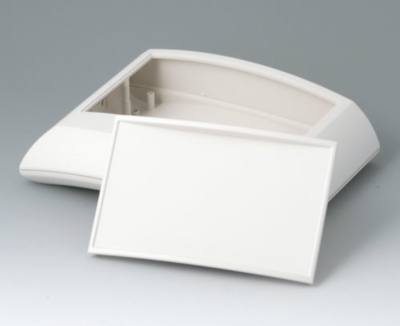 Ergonomisch geformtes Gehäusedesign zum Tragen am Körper. Vertieft liegendes Bedienfeld zum Schutz der Folientastatur. Plane Fläche für individuelle Schnittstellen an der Stirnseite. Batteriefachdeckel rastbar (Batteriefach als Zubehör).