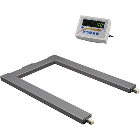 Die U-Form Bodenwaage ist eine eichfähig, geeichte, für den mobilen Einsatz vorgesehen, U-Form Bodenwaage. Die Abmessung der geeichten U-Form Bodenwaage sind der EU-Palettengröße (1200 x 800 mm) angepasst. Die U Form der geeichte Bodenwaage ermöglicht ein bequemes Auflegen der EU-Paletten, indem die Palette direkt mit dem Hubwaagen zwischen die beiden Holme gefahren und auf die Holme der geeichten U-Form Bodenwaage abgelegt werden können. Diese geeichte U-Form Bodenwaage ist aus lackiertem Stahl gefertigt. Um die robuste U-Form Bodenwaage mobil einsetzen zu können verfügt die U-Form Bodenwaage über zwei Rollen und ein Handgriff, somit kann die geeichte U-Form Bodenwaage schnell und einfach auf- und ab- gebaut oder von A nach B transportiert werden. Die Wiegedaten können auf dem externen Display (an 3,0 m Kabel) sehr gut abgelesen werden.
