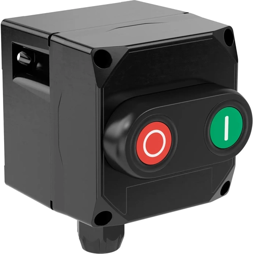 Doppeldrucktaster, rot/grün - 1x Schließer / 1x Öffner - Beschriftung '0 - l', Gehäuse aus Polyamid (PA).