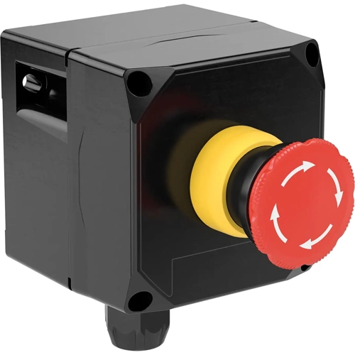 NOT-AUS-Pilztaster 40 mm, rot, Drehentriegelung - 2x Öffner, Gehäuse aus Polyamid (PA).