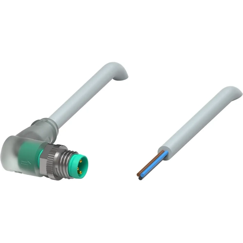 Kabelstecker M8 gewinkelt A-kodiert, LED 3-polig, PVC-Kabel grau.