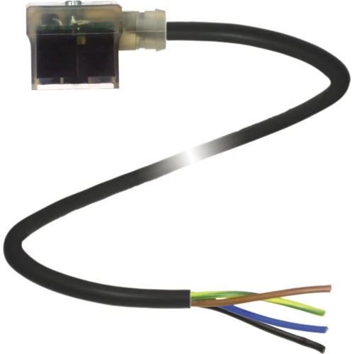 Sensor-Aktor Kabel, Ventilsteckverbinder DIN form A, abgewinkelt auf offenes Ende, 2-polig + PE, 10 m, PUR, schwarz, 2 A, 247717