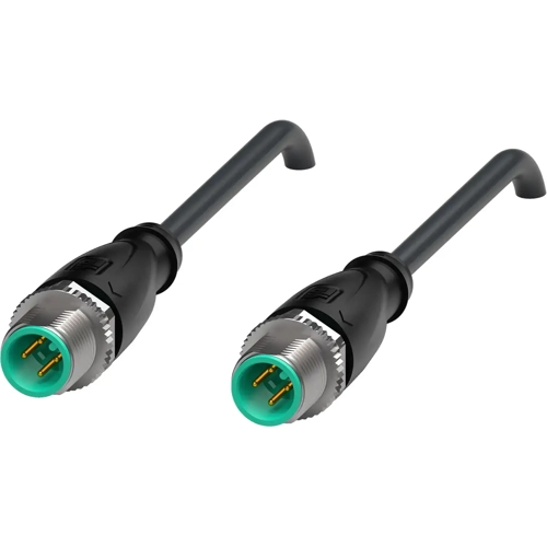 Adapterkabel M12-Stecker gerade auf M12-Stecker gerade A-kodiert, 4-polig, PUR-Kabel schwarz, UL-zugelassen, schleppkettentauglich, torsionsgeeignet.