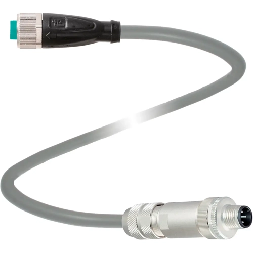 Verbindungskabel M12-Buchse gerade A-kodiert 8-polig auf M12-Stecker gerade B-kodiert 5-polig, PUR-Kabel grau, geschirmt.