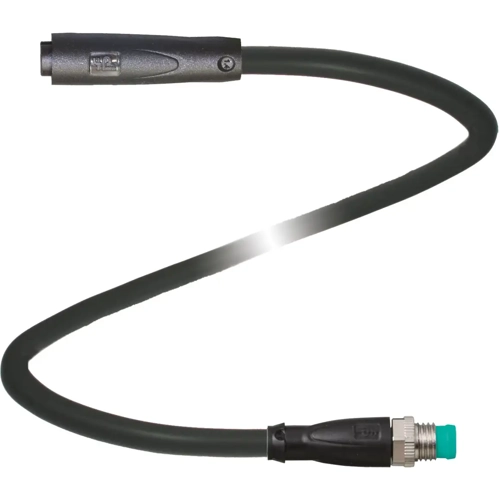 Adapterkabel M8-Buchse Rastverriegelung gerade A-kodiert 3-polig auf M8-Stecker Schraubverriegelung gerade A-kodiert 4-polig, PUR-Kabel schwarz, UL-zugelassen, schleppkettentauglich, torsionsgeeignet.