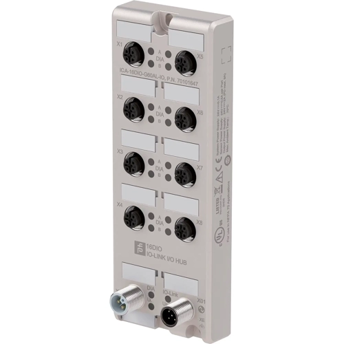 I/O-Hub mit IO-Link-Schnittstelle für 16 digitale Eingänge/Ausgänge.