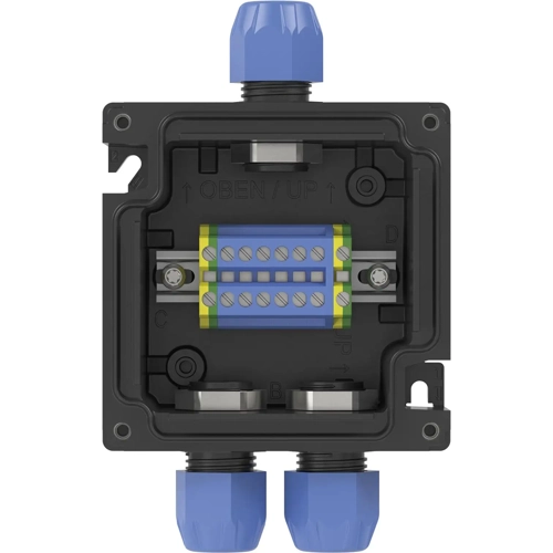 Abzweigdose, 99 x 99 x 65 mm, Einführungen: 3, 2,5 mm², schwarz/blau, IP66, 70124204
