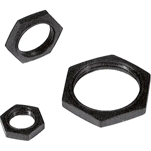Kunststoffmuttern mit Zentrierring zur schwingungsentkoppelten Montage zylindrischer Sensoren.