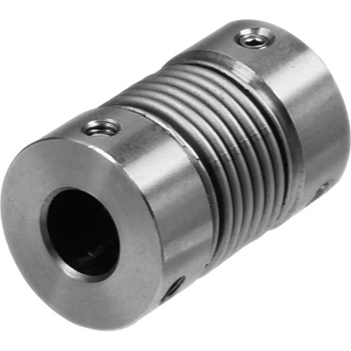 Edelstahl-Balgkupplung, Spielfreie, winkelsynchrone Übertragung von Drehbewegungen.