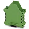 Tragschienengehäuse, Gehäuseunterteil mit Metallfußriegel, hohe Bauform und Lüftungsschlitzen, Breite: 35,2 mm, Höhe: 99 mm, Tiefe: 107,3 mm, Farbe: grün (6021), Querverbindung: Tragschienen-Busverbinder (optional), Polzahl Querverbinder: 5