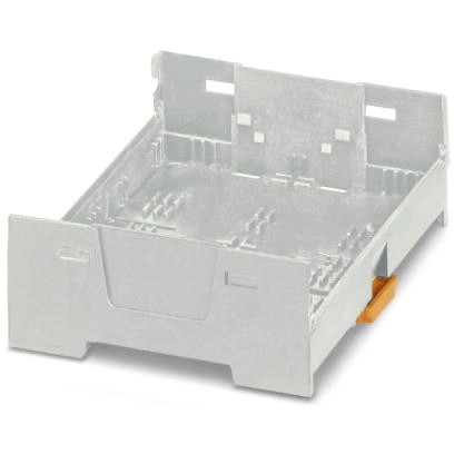 Tragschienengehäuse, Gehäuseunterteil mit Fußriegel, flache Bauform, Breite: 90,1 mm, Höhe: 75 mm, Tiefe: 30,3 mm, Farbe: lichtgrau (7035).
