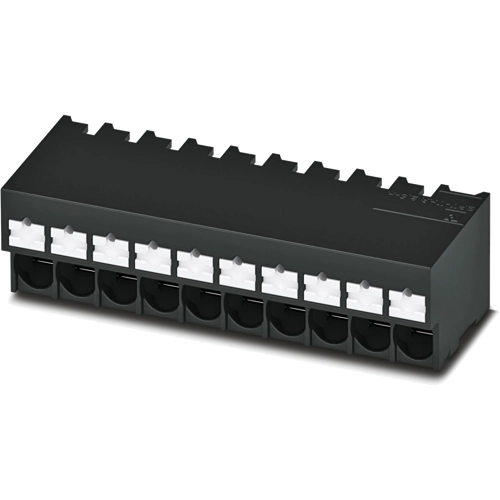 Leiterplattenklemme, Nennstrom: 32 A, Bemessungsspannung (III/2): 400 V, Nennquerschnitt: 4 mm², Anzahl der Potenziale: 8, Anzahl der Reihen: 1, Polzahl pro Reihe: 8, Rastermaß: 5 mm, Anschlussart: Push-in-Federanschluss, Montage: THR-Löten, Anschlussrichtung Leiter/Platine: 0 °, Farbe: schwarz, Pin-Layout: Lineares Pinning, Pinlänge [P]: 2 mm, Anzahl der Lötpins pro Potenzial: 2.