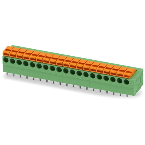 PCB-Klemmenblock, Nennstrom: 12 A, Nennspannung (III/2): 160 V, Nennquerschnitt: 1 mm², Anzahl der Potentiale: 19, Anzahl der Reihen: 1, Anzahl der Positionen pro Reihe: 19, Stellplatz: 3,81 mm, Verbindungsmethode: Steckfederanschluss, Leiter/PCB-Anschlussrichtung: 0 °, Farbe: grün, Pin-Layout: lineare Doppelbefestigung, Lötstift: 3,4 mm, Anzahl der Lötstifte pro Potential: 2.