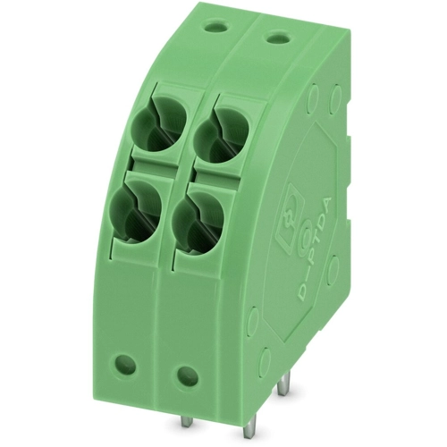 PCB-Klemmenblock, Nennstrom: 17,5 A, Nennspannung (III/2): 240 V, Nennquerschnitt: 1,5 mm², Anzahl der Potentiale: 2, Anzahl der Reihen: 1, Anzahl der Positionen pro Reihe: 2, Stellplatz: 3,5 mm, Verbindungsmethode: Steckfederanschluss, Leiter/PCB-Anschlussrichtung: 45 °, Farbe: grün, Pin-Layout: lineare Doppelbefestigung, Lötstift: 3,5 mm, Anzahl der Lötstifte pro Potential: 2.
