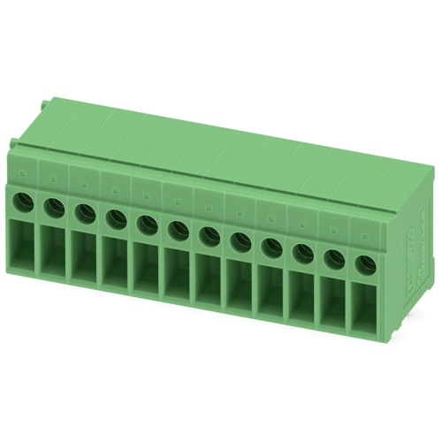 PCB-Klemmenblock, Nennstrom: 32 A, Nennspannung (III/2): 320 V, Nennquerschnitt: 4 mm², Anzahl der Potentiale: 12, Anzahl der Reihen: 1, Anzahl der Positionen pro Reihe: 12, Stellplatz: 6,35 mm, Verbindungsmethode: Frontverschraubung, Leiter/PCB-Anschlussrichtung: 0 °, Farbe: grün, Pin-Layout: lineare Doppelbefestigung, Lötstift: 5 mm, Anzahl der Lötstifte pro Potential: 2.