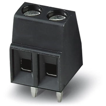 PCB-Klemmenblock, Nennstrom: 13,5 A, Nennspannung (III/2): 200 V, Nennquerschnitt: 1,5 mm², Anzahl der Potentiale: 2, Anzahl der Reihen: 1, Anzahl der Positionen pro Reihe: 2, Stellplatz: 3,5 mm, Verbindungsmethode: Verschraubung mit Spannhülse, Schraubenkopf-Form: L geschlitzt, Leiter/PCB-Anschlussrichtung: 0 °, Farbe: schwarz, Pin-Layout: lineares Pinning, Lötstift: 3,5 mm, Anzahl der Lötstifte pro Potential: 1.