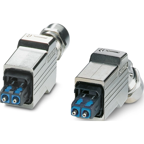 Push-Pull-Steckverbinder (Version 14), Zinkdruckguss, mit SC-RJ-Einsatz für POF, für Kabeldurchmesser von 5,5 mm - 10 mm, Kabelabgang nach unten.